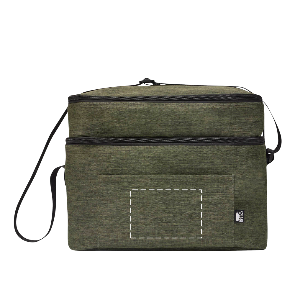 Kühltasche DEERING: aus recyceltem Polyester (RPET), unten großes isoliertes Hauptfach mit PEVA-Futter mit Steckfach auf der Vorderseite, oben kleines isoliertes Fach, verstellbarer Tragegurt