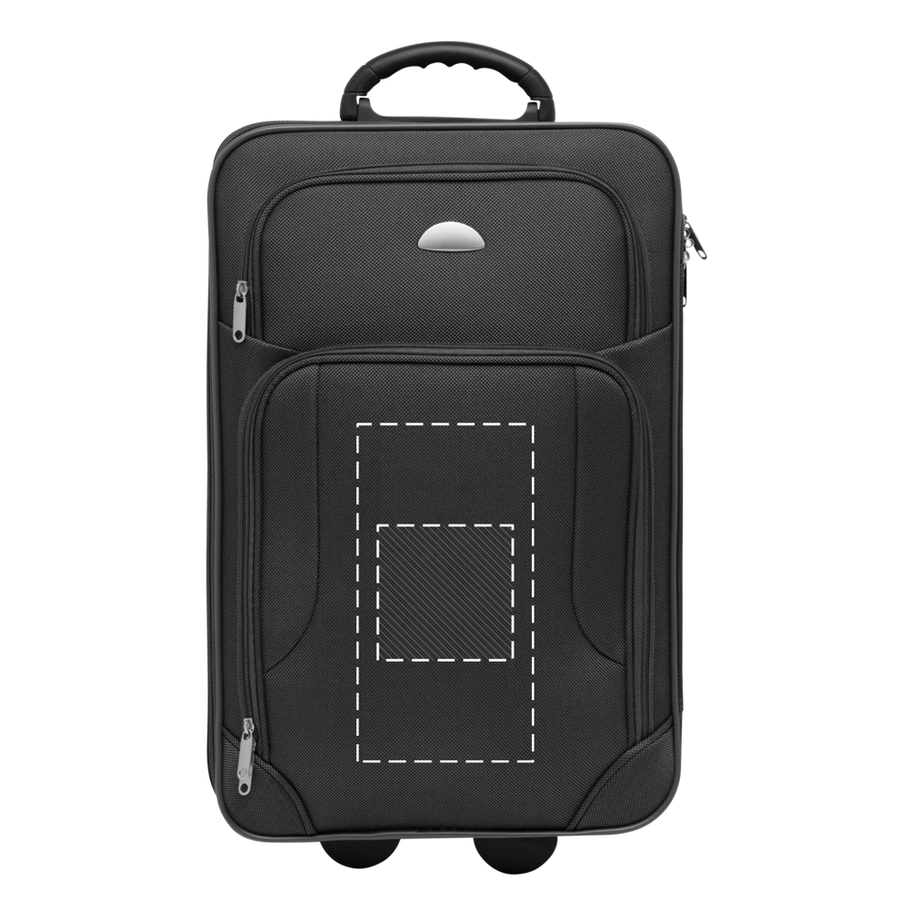 Trolley-Bordcase GALWAY: Reißverschluss-Hauptfach mit gefüttertem Packraum und extra Reißverschluss-Fach, 2 Reißverschluss-Vortaschen und ein auswechselbares Metalllogo auf der Front, Adressfach auf der Rückseite, Tragegriff, arretierbares und versenkbares Trolleygestell, 2 Leichtlauf-Skaterrollen mit Kantenschutz und Bodenfüße