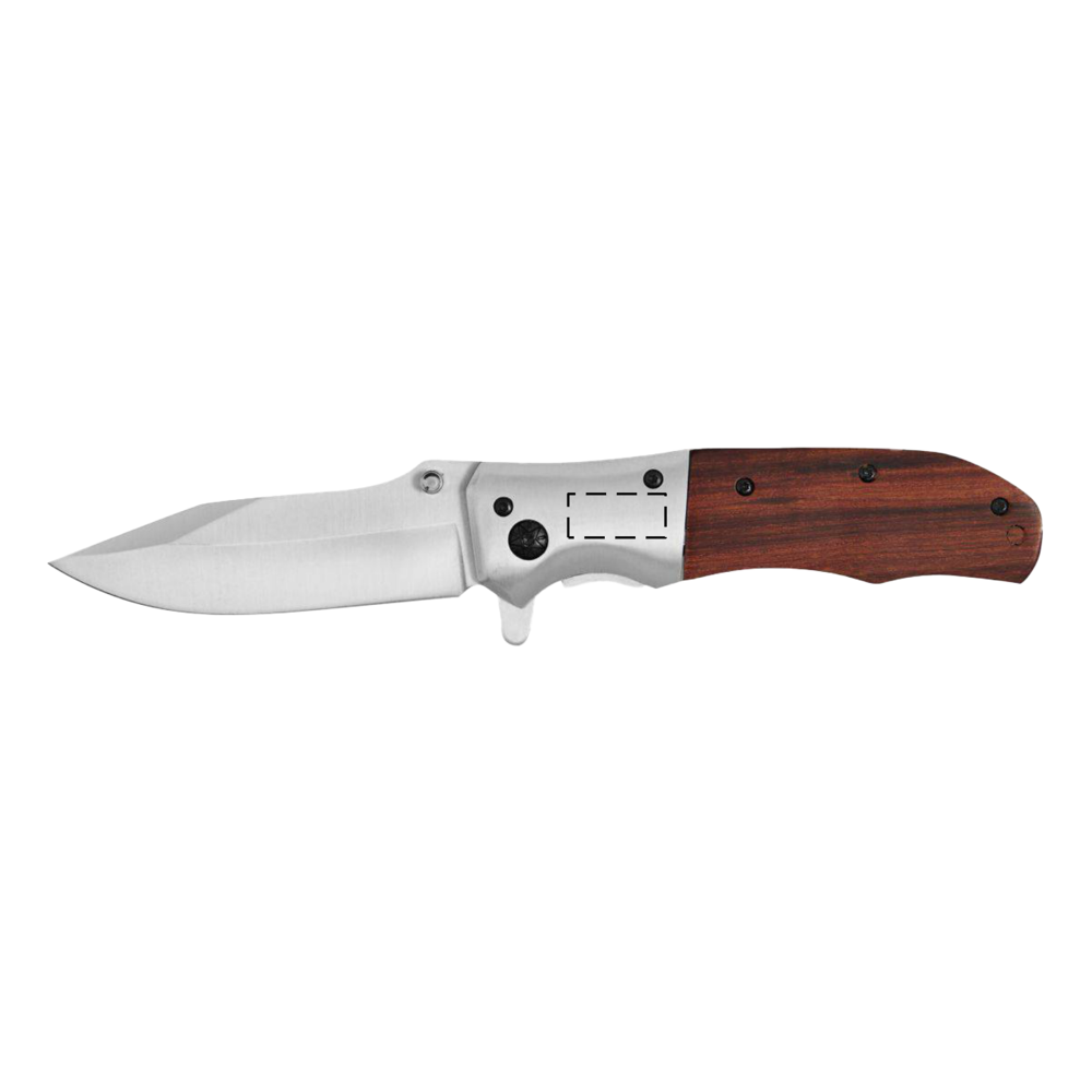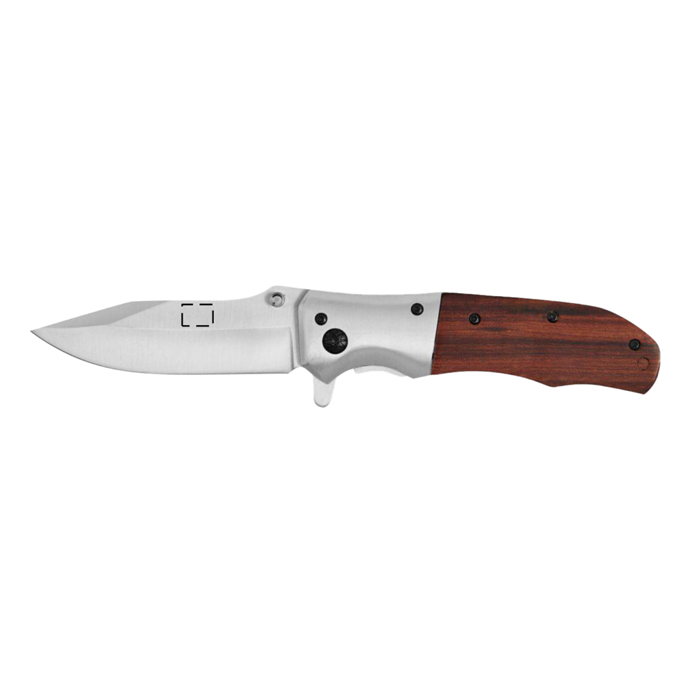 Jagdmesser HUNTSMAN: breite Edelstahlklinge, Holzapplikation am Griff, mit Gürtelclip, im Holzetui